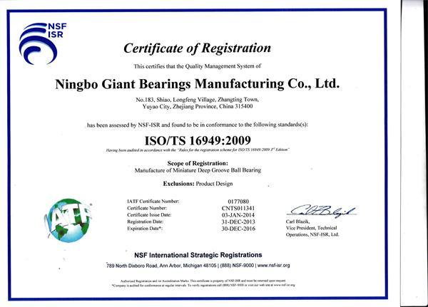 Bescheinigung von ISO/TS16949: 2009
