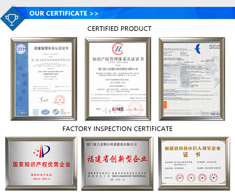 Xiamen ZL Diamond Technology Co., Ltd. ist ein Berufsdiamanthilfsmittelhersteller. Unsere Hauptprodukte schließ En ein Diamantausschnittschaufeln, Schleifscheibe, Polierauflagen, Kernbohrer, Diamantdrahtsä Ge, etc. Unsere Produkte werden fü R Ausschnitt verwendet und reiben das Polieren und die Bohrung des Steins, der Keramik, der Glä Ser und des Betons
